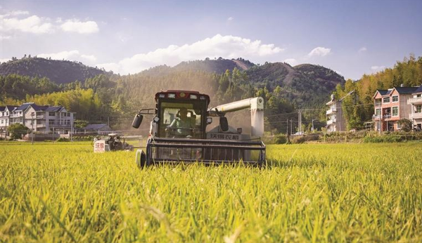 10月8日,横峰县青板乡徐村千亩制种水稻基地,农户驾驶农机收割成熟的制种水稻,一片火热繁忙的好“丰”景。近年来,横峰县因地制宜发展制种水稻产业,建起育苗、生产、加工、销售等全链条制种产业链,促进农民增收。薛南 摄