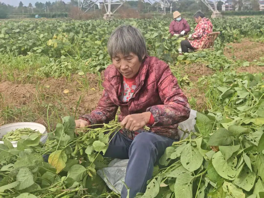 “以前农闲的时候我们只能待在家里,现在有了这个基地,在家门口就能打工挣钱补贴家用,工资都是日结的,一天就能拿到一百多块钱。”村民缪阿姨一边熟练地采摘着毛豆,一边高兴地说,“而且大家聚在一起干活,可热闹了!”
