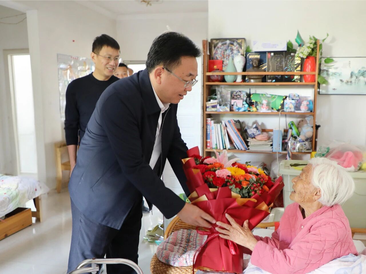 李小平一行先后来到退休老干部陈子峰、百岁老人张桂花和高龄老人江十美家中,亲切询问他们的身体状况和生活近况,期望他们保持乐观豁达的精神状态,祝愿他们老有所乐,健康长寿。