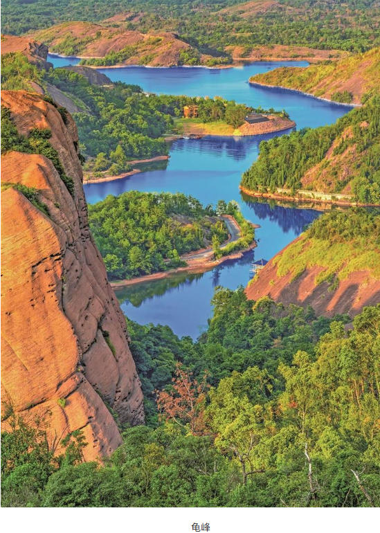 深秋,是龟峰一年中最绚烂的时节。这里,层林尽染,红、黄、绿交织缠绕,宛若大自然打翻了调色盘,泼洒出如火焰般流动的画卷。