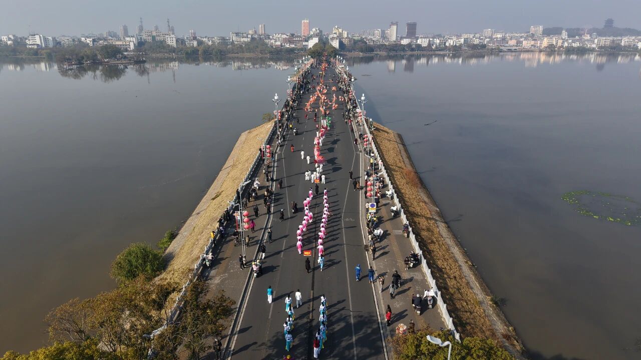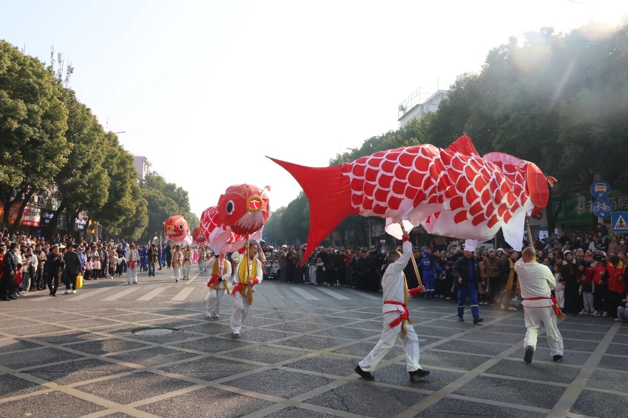 巡游队伍似一条蜿蜒前行的长龙,一路表演,让市民游客近距离感受非遗文化的魅力,大家都兴致勃勃地举起了手机和照相机,记录着这场传统文化盛会的精彩瞬间。