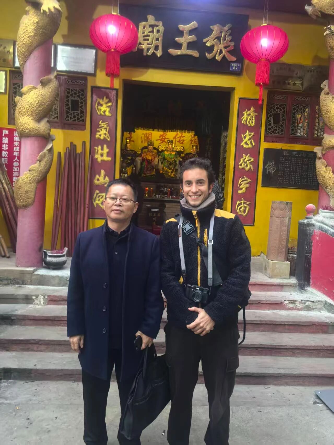 正午时分,一缕初冬阳光掠过“张王庙”牌匾。记者看见几个穿汉服的女孩举着手机直播,弹幕里刷过“这才是文化自信”“想带孩子来看”的留言。