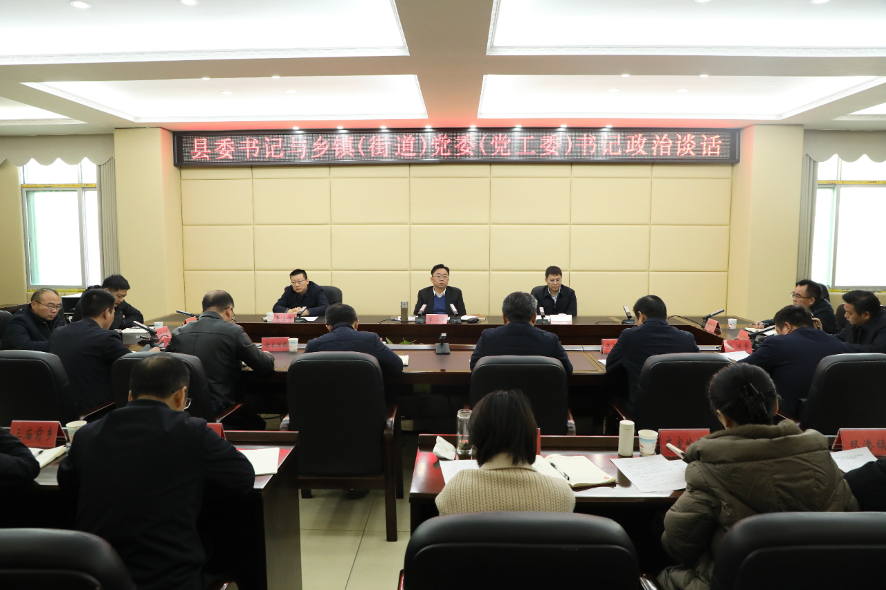 12月25日,市政府副市长、县委书记李小平与各乡镇(街道)党委(党工委)书记开展政治谈话。县领导侯利森、夏立荣出席会议。