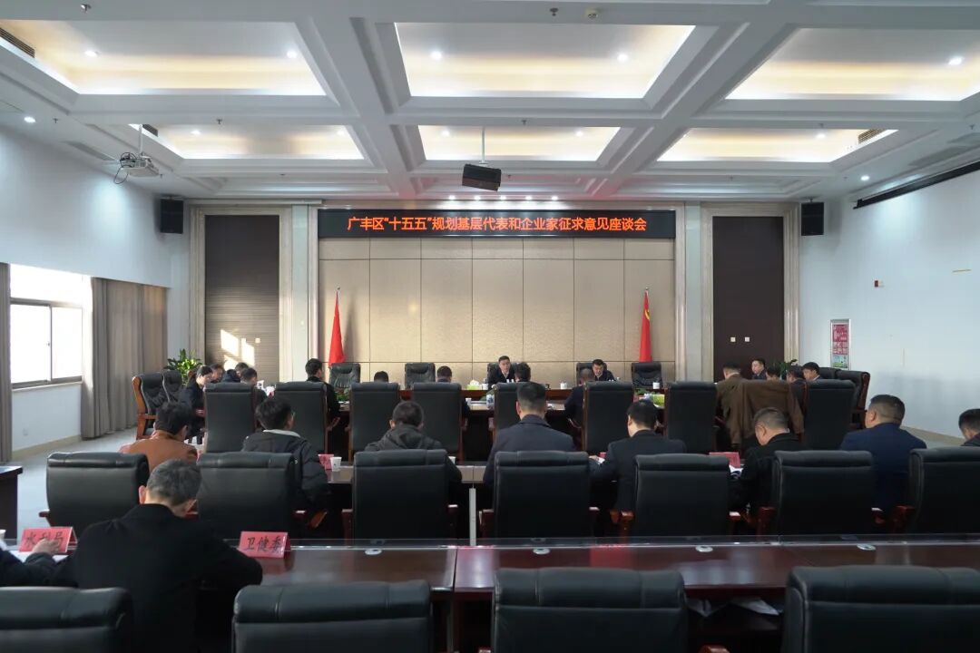 12月30日,区委副书记、代区长邓跃跃主持召开广丰区“十五五”规划基层代表和企业家征求意见座谈会。他强调,要深入学习贯彻党的二十届四中全会精神和习近平总书记对“十五五”规划编制工作的重要指示精神,全面落实党中央和省委、市委部署要求,紧扣高质量发展首要任务,坚持开门问策、科学谋划,确保“十五五”规划契合广丰实际、顺应人民期盼、引领未来发展,奋力谱写中国式现代化广丰新篇章。