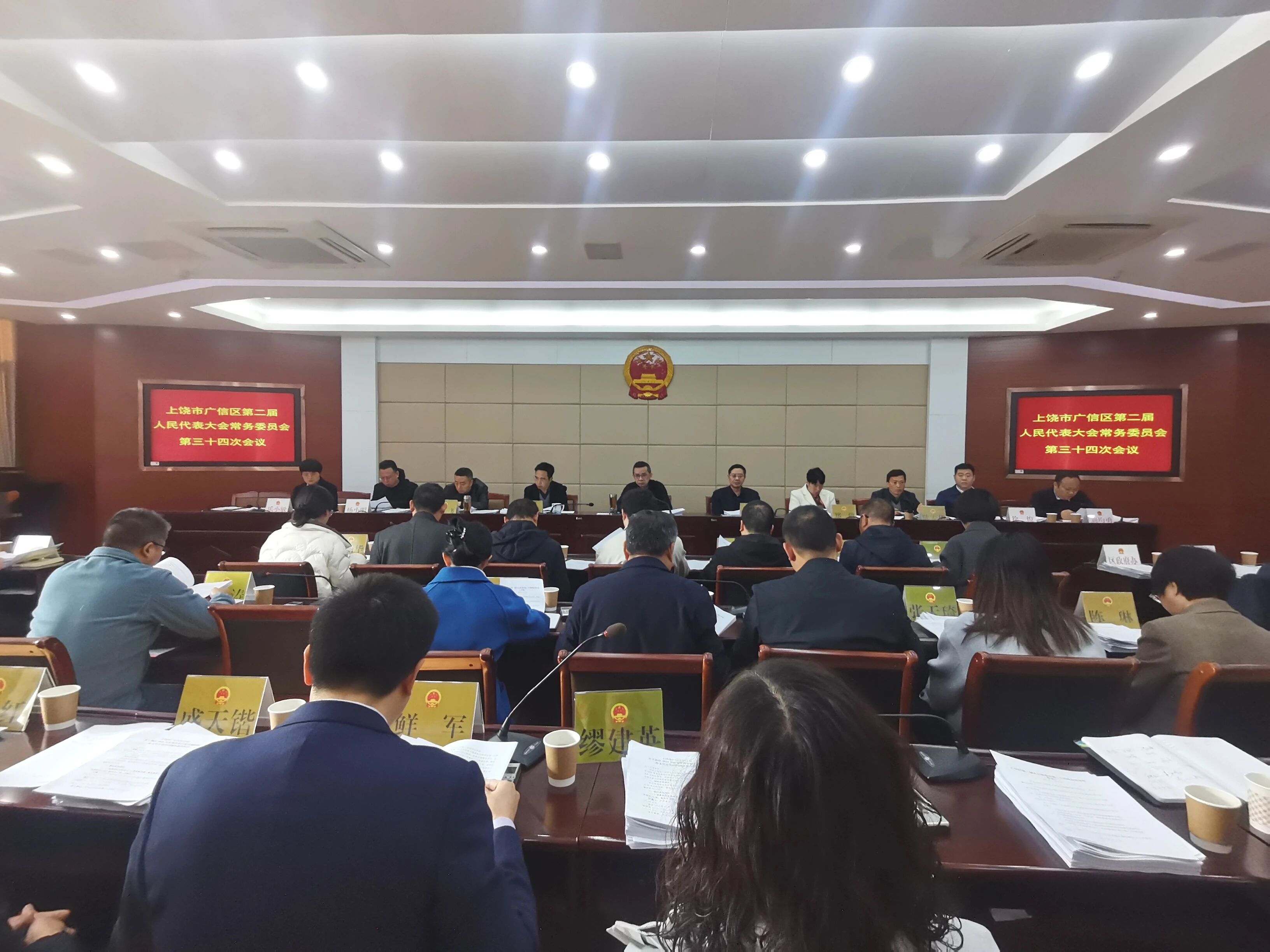 12月30日上午,广信区第二届人大常委会第三十四次会议在区人大常委会议室召开。区人大常委会党组书记、主任童晓闻主持,区人大常委会副主任徐明福、叶小华、郑倩、方飞、陈宏华及区人大常委会组成人员出席。区委常委、区纪委书记、区监委主任徐俊,区委常委、常务副区长刘均勇,区人民法院院长杨小明,区人民检察院检察长乐小敏列席,区人大及其常委会各专(工)委副主任,区直相关单位负责人列席。