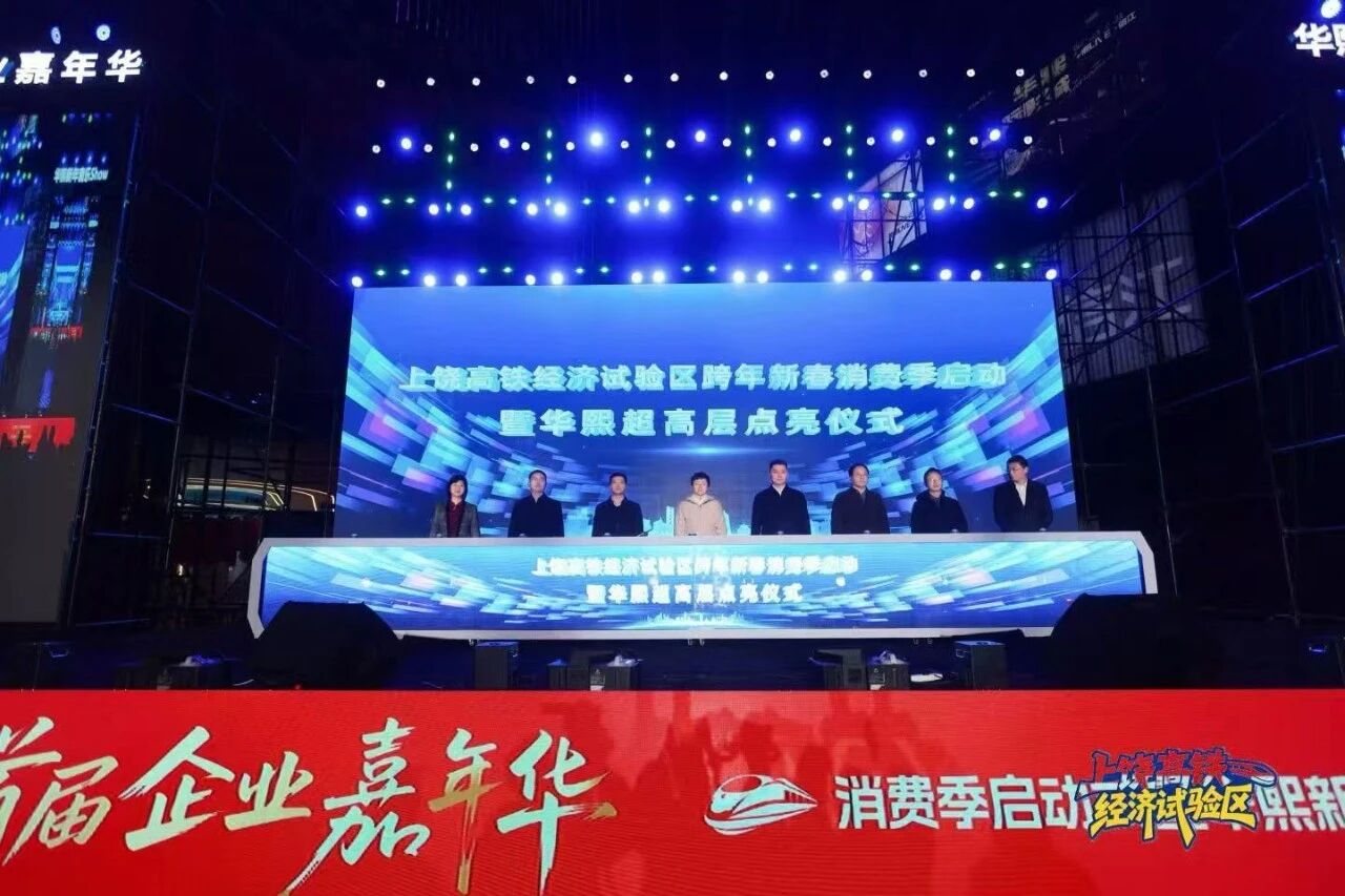 启动仪式上,解鸳副市长和市直有关单位领导、试验区主要领导一同启动上饶高铁经济试验区跨年新春消费季,标志着消费季系列活动正式拉开帷幕。