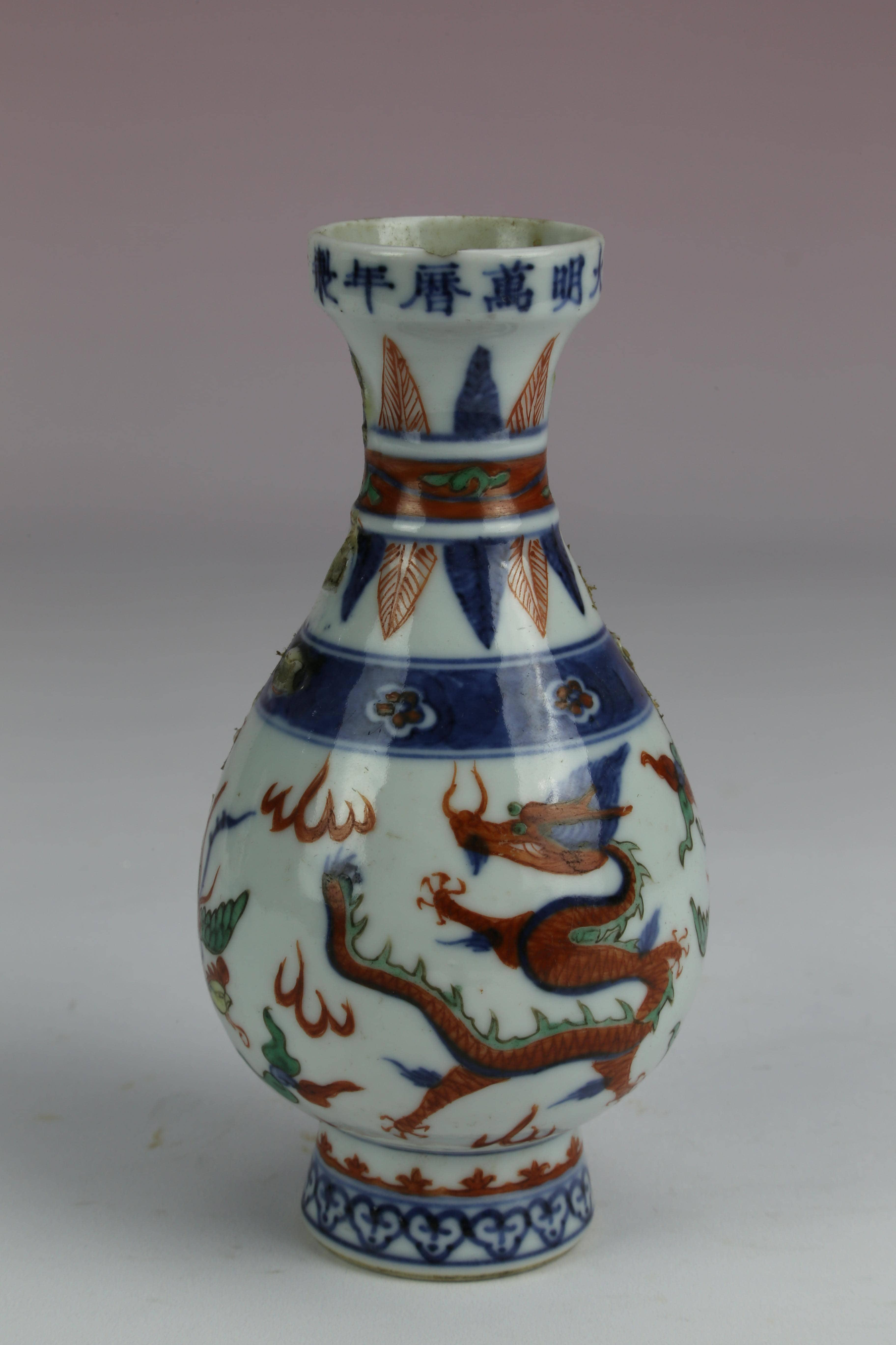 明万历五彩龙凤纹瓶
