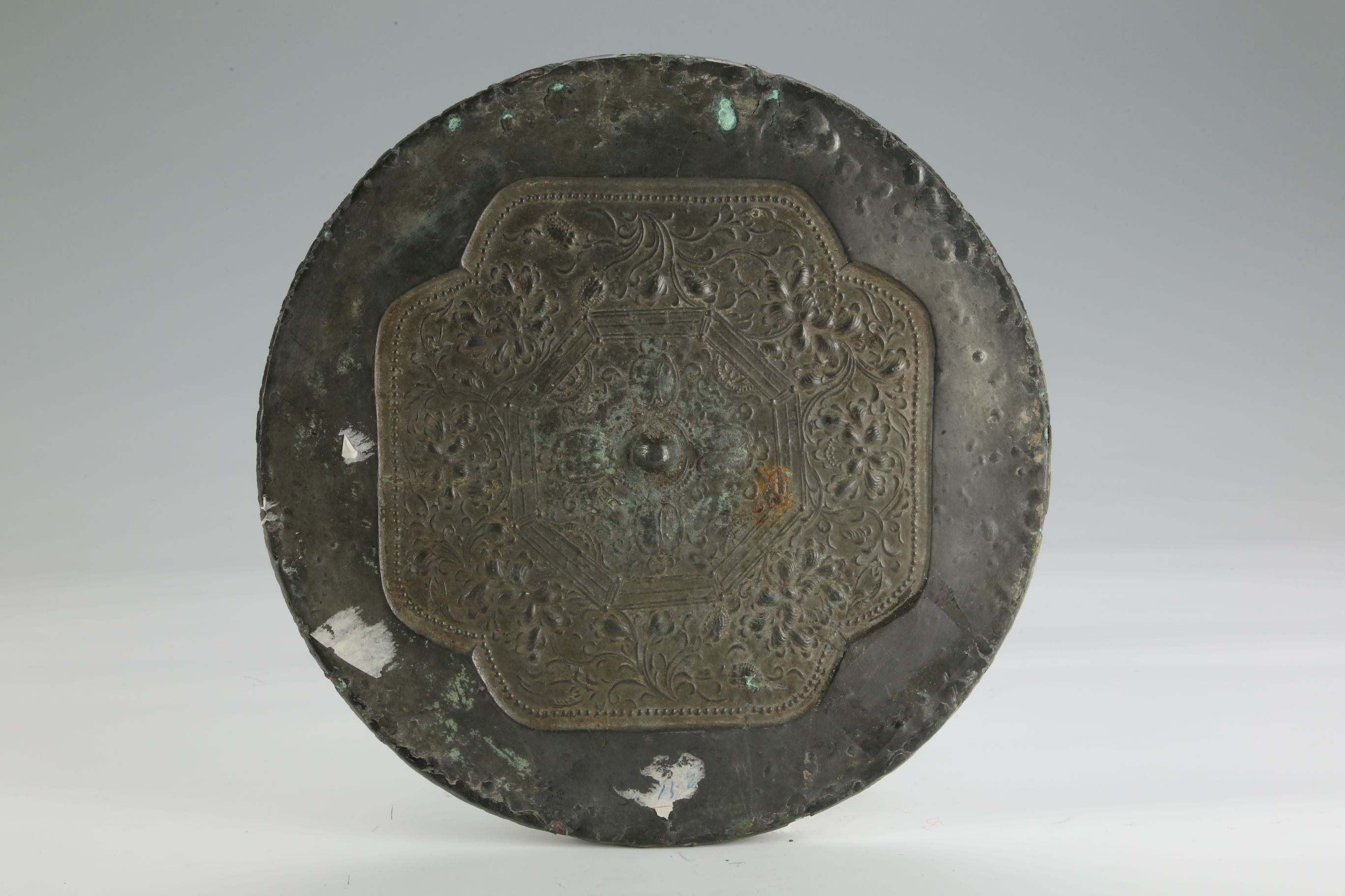 北宋亚字形开光花卉纹铜镜