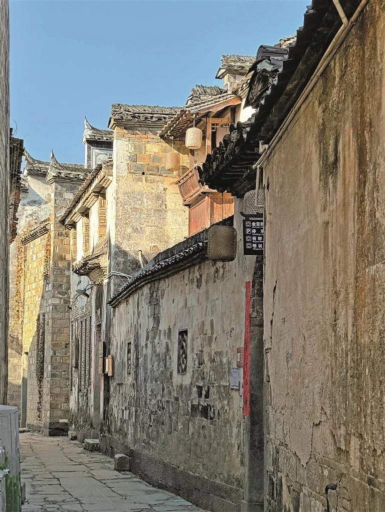 穿行于冬日的巷道,时间仿佛也缓了下来。砖雕门楼静立如史,“福禄寿喜”纹样沉淀着岁月;抚过老宅砖面,每一道刻痕都是匠心的温度。光线低斜漫入,将廊檐、石阶照得深邃分明。而当光掠过溪面,细碎的波痕便温柔拓印于古桥拱腹,坚硬桥身漾开温润光纹,如岁月在浅吟低语。