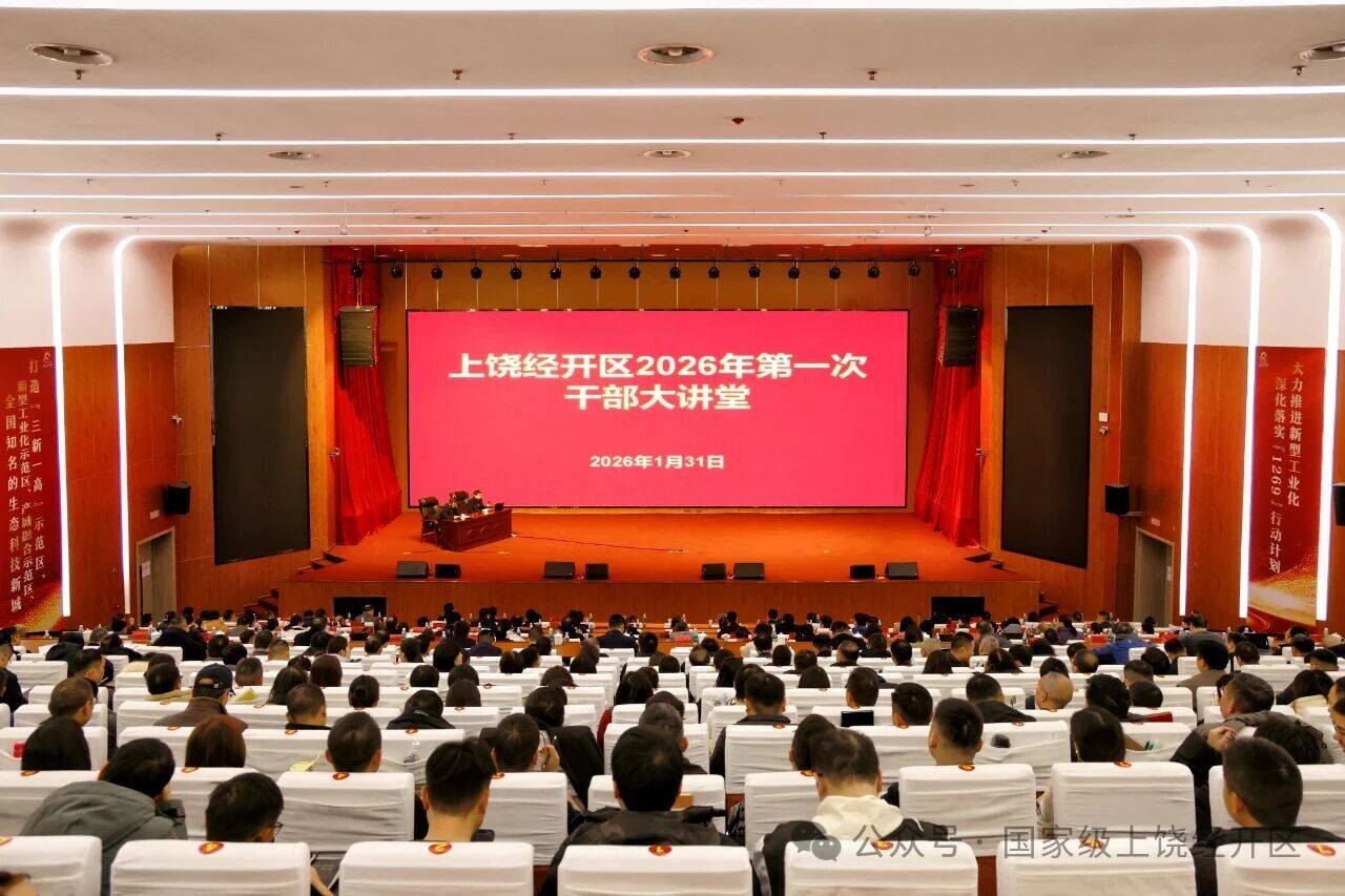 为进一步凝聚思想共识,开阔发展眼界,增强干事本领,1月31日,上饶经开区2026年第一次干部大讲堂举行。区党工委书记郑国良主持并讲话。他强调,全区上下要深入学习贯彻习近平经济思想、党的二十届四中全会和中央经济工作会议精神,以学增智、以干砺能,抢抓机遇、攀高向新,以培育新质生产力塑造竞争新优势。刘加丰、周小凤、江新炜、姜健、叶小丽出席。