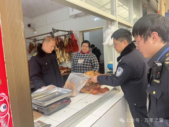 近日,万年县市场监督管理局联合县公安局启动“查打一体,守味新春”食品安全“春风1号”专项行动。执法人员以“全链条排查、全方位整治、全力度打击”为原则,聚焦节日消费热点,靶向整治突出问题,以零容忍态度严厉打击食品领域违法违规行为,为群众欢度新春佳节保驾护航。