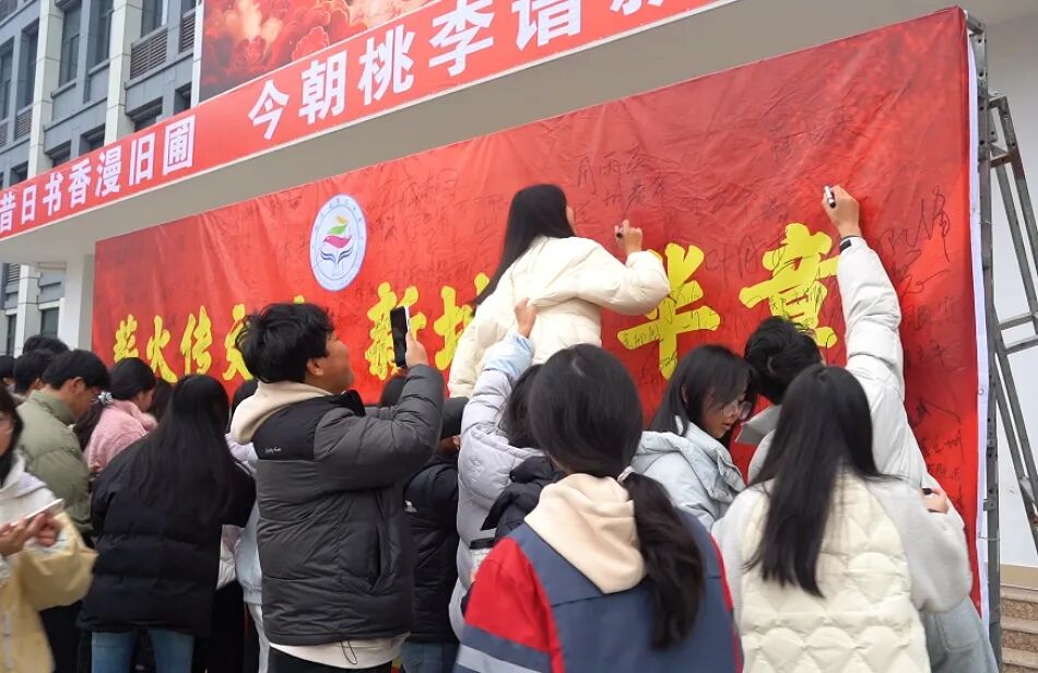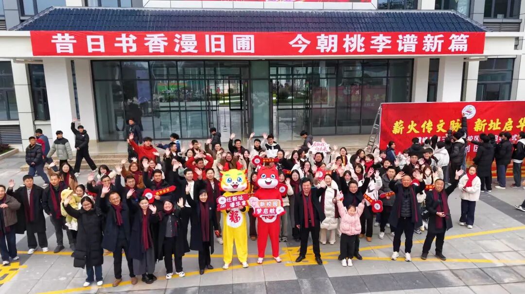 前往新校的大巴车上,学子们满怀憧憬,一齐喊着口号,尽显青春朝气与奋进决心。 师生们手持“启新程 向未来”“迁新址 谱华章”等祝福牌步入新校园。“薪火传文脉 新址启华章”签名墙前,大家踊跃留名、欢呼雀跃;学生们主动参与桌椅搬运,处处洋溢着温馨热烈的氛围。