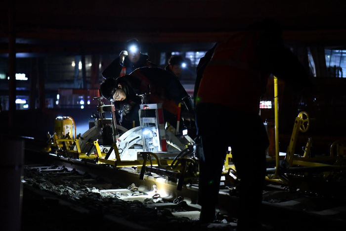 这样的作业只能在凌晨0:30至4:30的“天窗时间”进行。此时,高铁线路暂时封锁,没有列车通行。北京南维修工区负责北京南站城际场、高速场共计75组道岔、38公里线路的养护维修任务。春运里,列车开行密度增加,可供维修高铁线路的“天窗”减少,刘强和工友们对每个“天窗”都格外珍惜,保证所负责养护维修的设备都以最健康的状态投入春运。