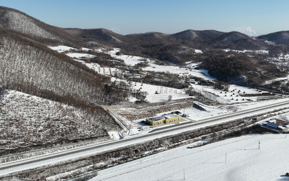 春运大幕拉开,当千万人奔赴团圆之时,吉林灵岩寺的苍松翠柏间,一场风雪正覆盖山野。在山坳深处,开通仅一年多的大绥河站静静伫立,青灰色的站房被皑皑白雪环绕,远山如黛,近林似银,唯有站台上方的 “大绥河站” 四个红色大字,在风雪中格外醒目。