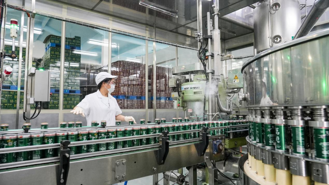 走进瑞贝福(江西)饮料食品有限公司的现代化生产车间,只见一排排高速运转的自动化生产线与工人协同作业,精准完成葛根清洗、压榨、过滤、灌装等全流程工序,将新鲜葛根变身成一罐罐清爽健康的葛根汁。“这是国内首条全自动葛根汁生产线,可年产10万吨葛根汁。”公司副总经理李鹤汀告诉记者。