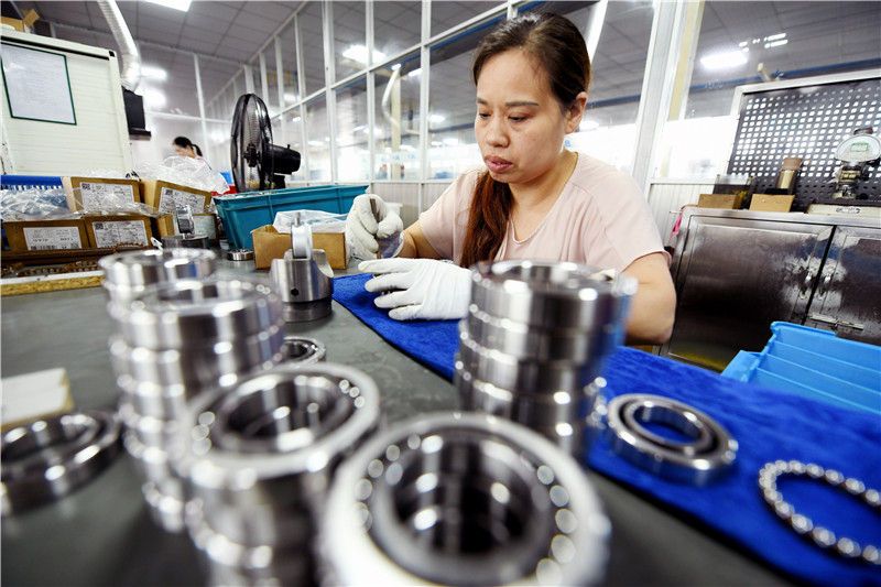 8月2日,玉山县轴承企业工人正在赶制出口轴承。据了解,该县从事加工轴承的企业共有40余家,生产的各类不同型号的轴承占全省同行业90%份额以上,不仅国内市场看好,还出口欧美和东南亚等60多个国家,并带动超2000人在家门口就业。