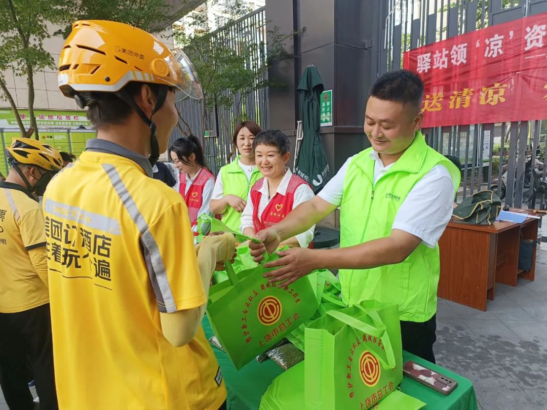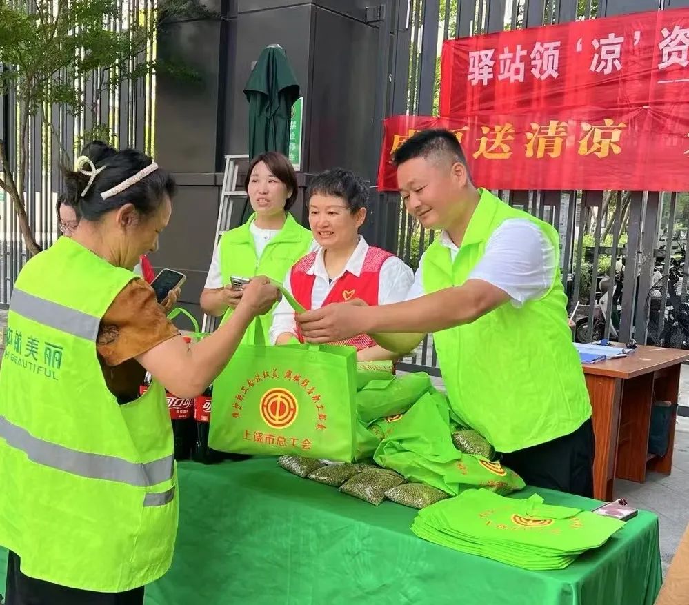 为表达对户外劳动者辛勤付出的深切关怀,8月7日上午,上饶市总工会联合广信区总工会,在广信区吾悦社区工会驿站及该区电信公司主营业厅工会驿站等多个站点,举办了“驿站领凉资 关爱沁人心”送清凉活动。以实际行动为高温下坚守岗位的外卖员、快递员、环卫工人等户外劳动者送去清凉与慰藉。