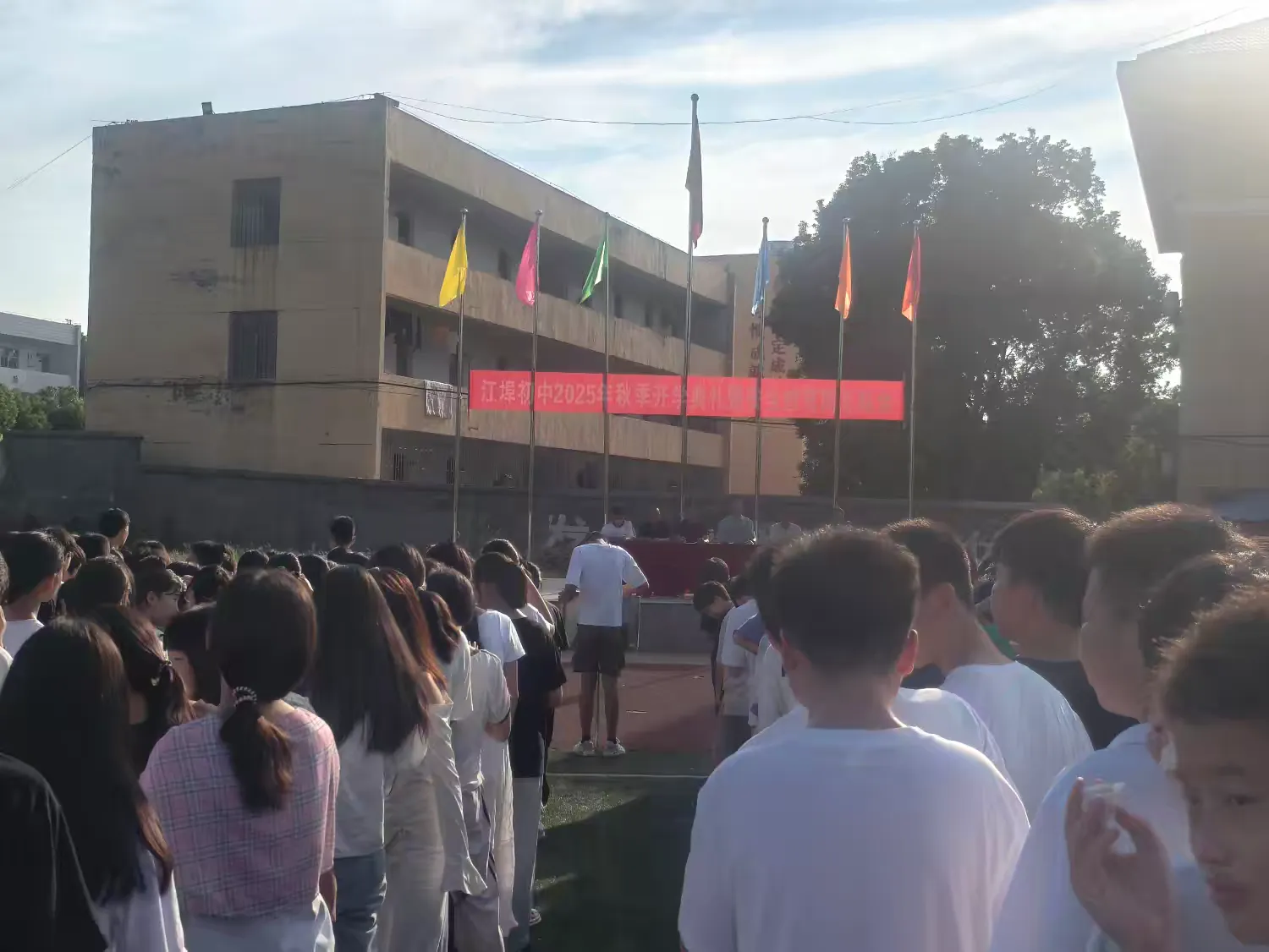 9月5日,余干县江埠初级中学举办了2025年秋季开学典礼暨安全教育周总结会,全校师生齐聚操场,共同开启新学期征程,同时总结安全教育周成果,强化校园安全管理。