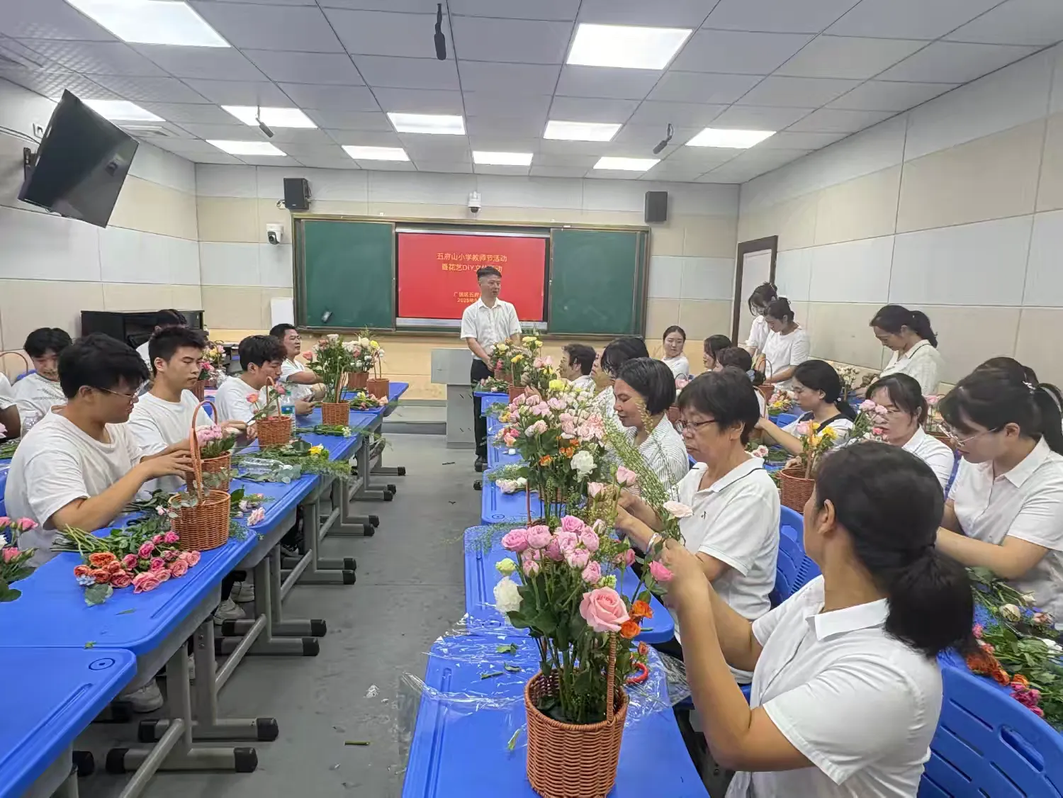 表彰大会后,“蛋糕祝福”环节温馨上演,教师们分享象征集体温暖的蛋糕。随后的“花香沁心田,师情暖校园”花艺DIY活动中,两个会场的教师兴致盎然,修剪花材、创意搭配,为作品取名,现场欢声笑语不断,大家用镜头定格美好瞬间。