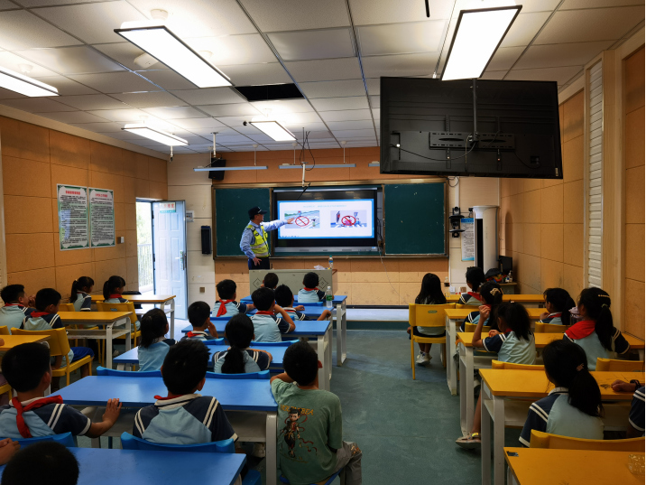 活动中,民警针对乡镇道路环境和小学生出行特点,结合近期发生的典型交通事故案例,用通俗易懂的语言向学生们讲解了安全步行、安全乘车、安全骑行自行车等基本常识。重点强调了“一盔一带”的重要性,告诫学生们乘坐摩托车、电动自行车务必规范佩戴安全头盔,乘坐汽车要系好安全带。民警还通过展示交通标志标识图片,与学生们进行互动问答,让大家在轻松愉快的氛围中认识和掌握各种交通信号的含义。