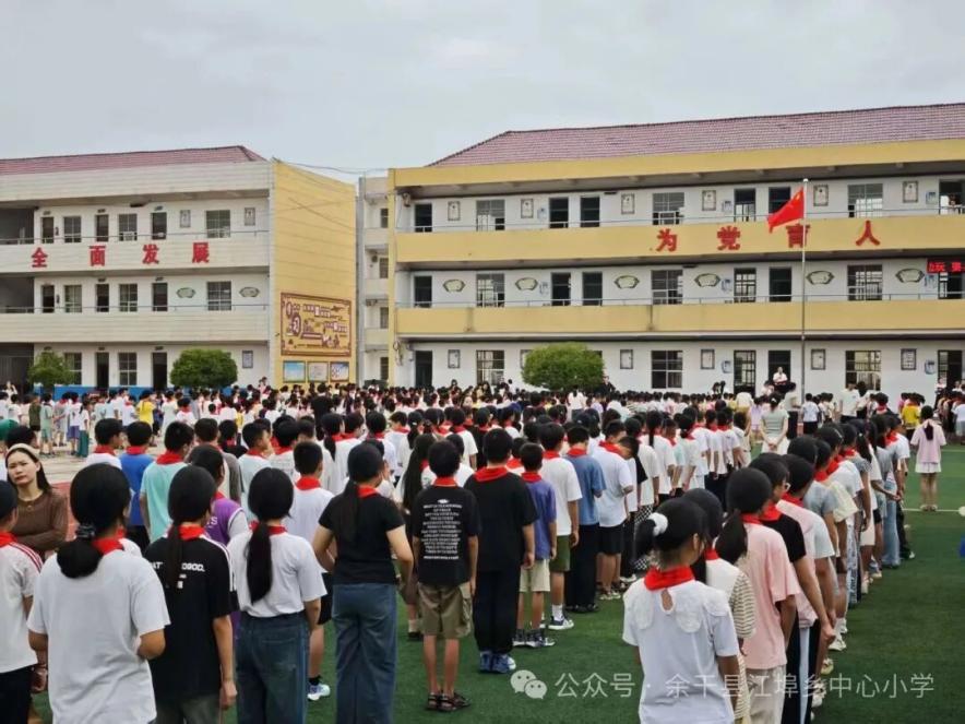 伴随着庄严的国歌,全体师生肃立注目,向国旗行注目礼,嘹亮的歌声中满含对祖国的热爱与敬意,也为新学期的开启奠定了庄重而神圣的基调。升旗仪式结束后,该校教师代表宣布余干县江埠中心小学 2025 年秋季开学典礼正式启动。