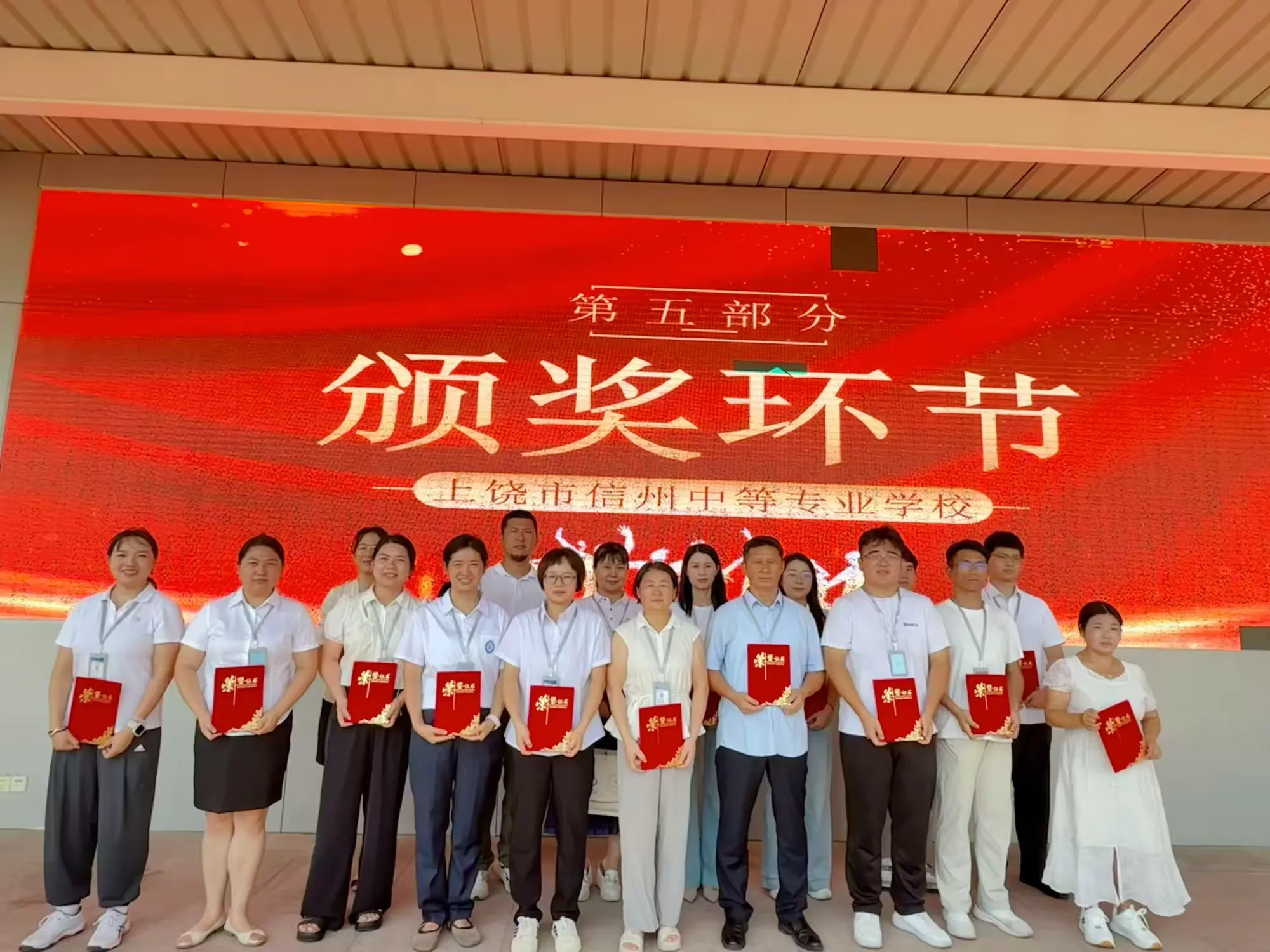 典礼现场还举行了颁奖仪式。学校依次为上一学年优秀教师、上饶市才艺大赛获奖节目指导教师及上学期技能竞赛获奖学生颁发荣誉证书与奖品。获奖师生代表依次上台领奖,脸上洋溢着荣誉与自豪,也激励着全场师生以先进为榜样、向优秀看齐。