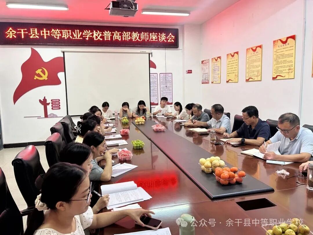 9月15日,余干县中等职业学校普高部在党员活动室召开了教师座谈会,共同探讨提升普高教育教学质量的方法。