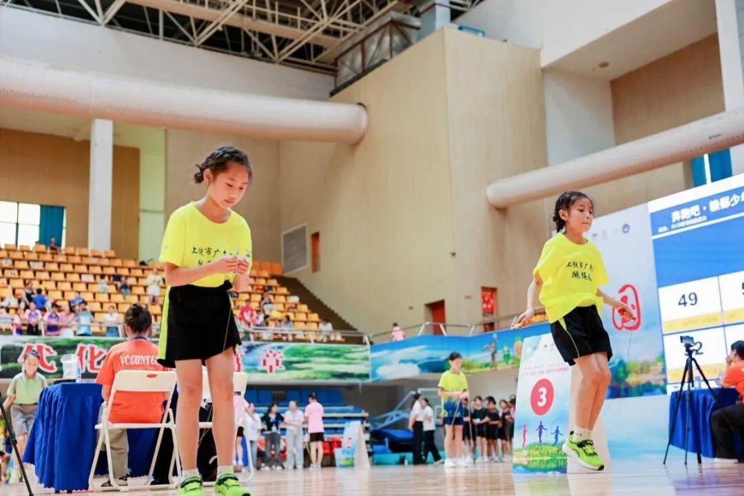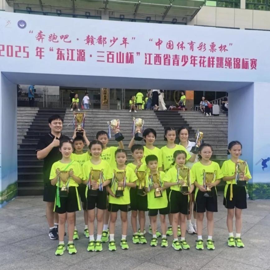 2025年江西省青少年花样跳绳锦标赛于9月19日-21日在赣州市安远县举行,全省共有70多支参赛队伍1000多名运动员参赛,由广丰区永丰小学牵头选送的22名运动员参加比赛,斩获14金18银11铜,并荣获团体总分第一名。