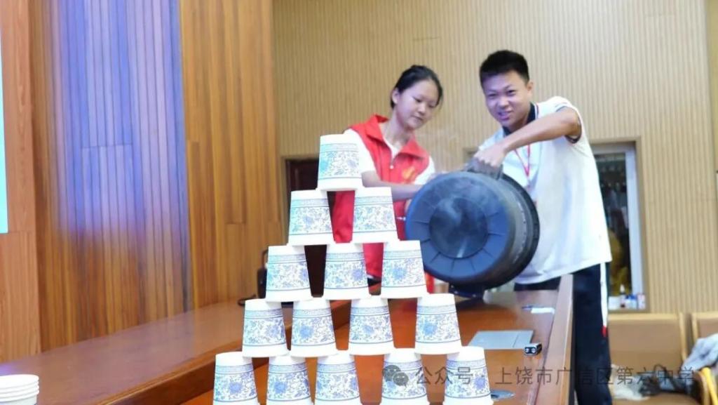 “空气炮”实验同样趣味十足,当“空气炮弹”发射,瞬间击倒堆叠的纸杯塔时,现场爆发出阵阵惊叹。同学们在观察中理解了空气动力的奥秘,不少同学还亲自参与操作,在实践中感受科学的神奇。