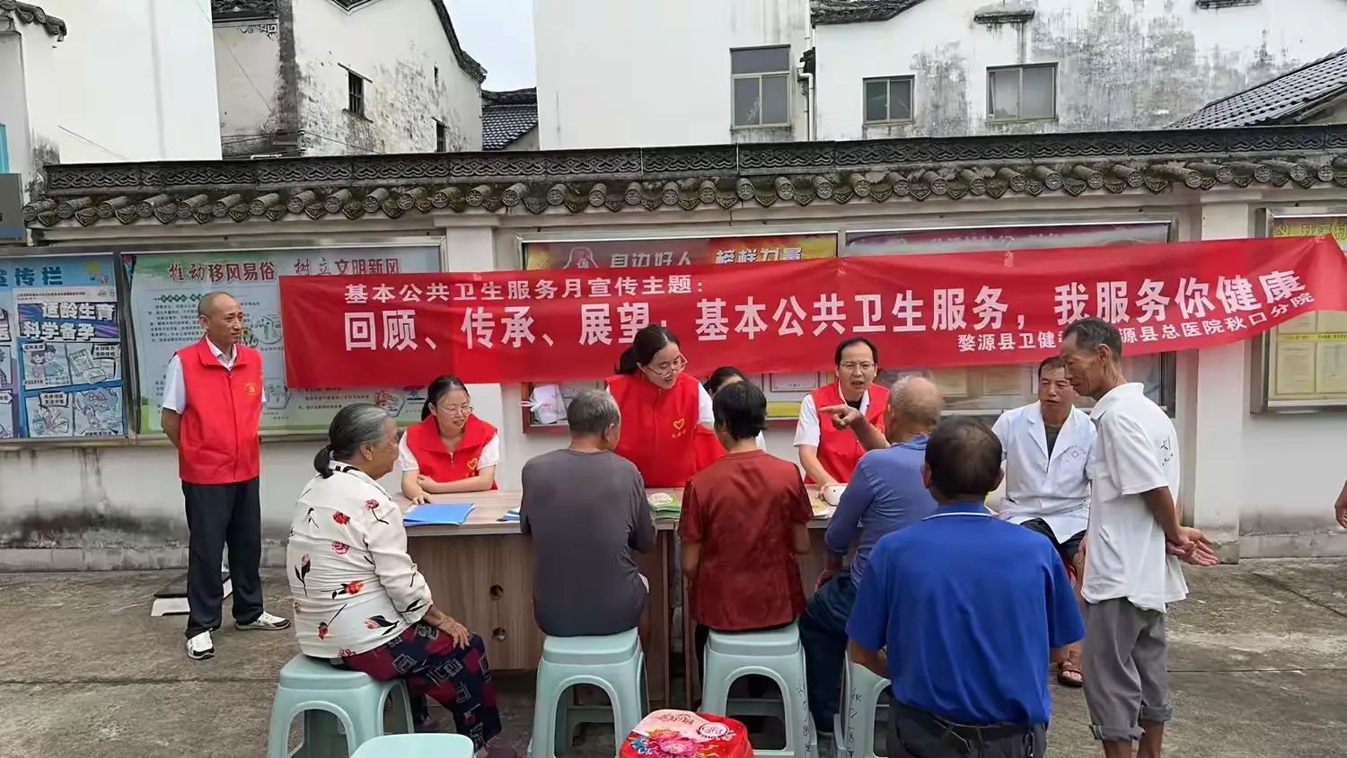 为进一步加强国家基本公共卫生服务项目政策宣传,让更多居民了解国家基本公共卫生服务项目内容和免费政策,使国家基本公共卫生服务项目家喻户晓、深入人心 ,近日,婺源县秋口镇中心卫生院公卫科利用公共卫生体检的时机紧紧围绕“回顾、传承、展望:基本公共卫生服务,我服务你健康。”的宣传主题,陆续在该院门诊大厅、秋口镇中心小学和秋溪村委会开展了健康宣传活动,活动现场卫生院公卫科医护人员通过现场宣讲、健康咨询、发放宣传资料、循环播放电子显示屏、悬挂横幅等形式,向前来咨询的群众广泛宣传国家基本公共卫生服务项目主要服务对象(高血压、糖尿病、肺结核、慢阻肺、严重精神障碍患者、0-6岁儿童、65岁以上老年人、孕产妇等重点人群)、服务内容、国家免费项目以及健康教育、家庭医生签约服务、预防接种、传染病及突发公共卫生事件报告和处理、卫生计生监督协管等内容。