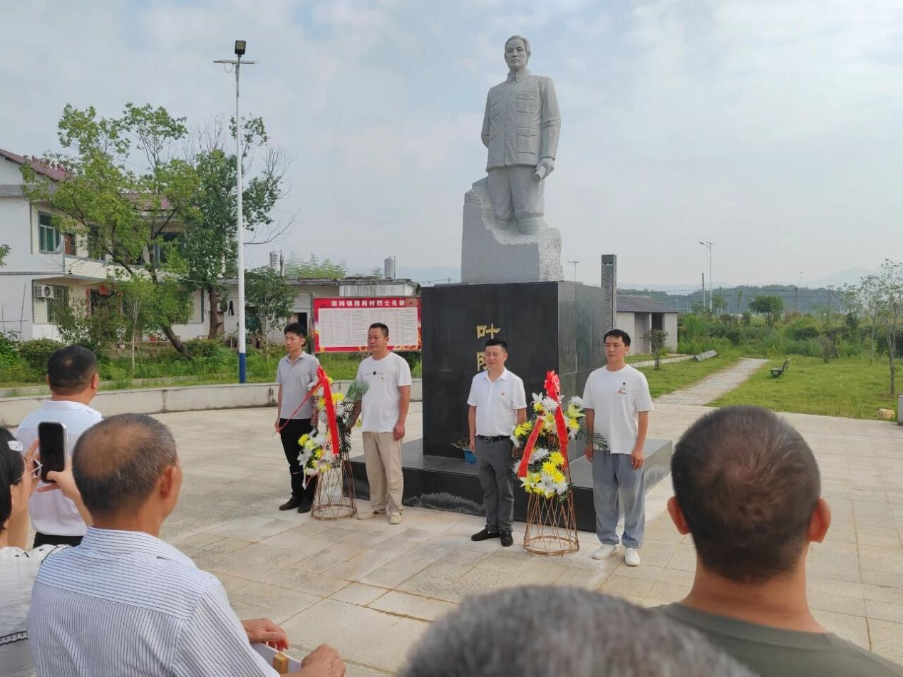 庄重的《献花曲》缓缓奏响,雅岗村退役军人代表稳稳抬起花篮,缓步走向叶际平烈士石像,将承载着无限哀思与敬意的花篮敬献于像前。镇退役军人事务站负责人神情庄重,上前仔细整理花篮上的缎带,寄托对革命先烈的深切悼念。