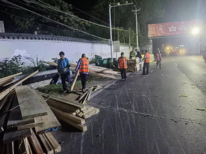 10月4日凌晨,德兴公路事业发展中心养护人员快速处置一起散落木材影响公路安全事件,确保公路安全畅通。