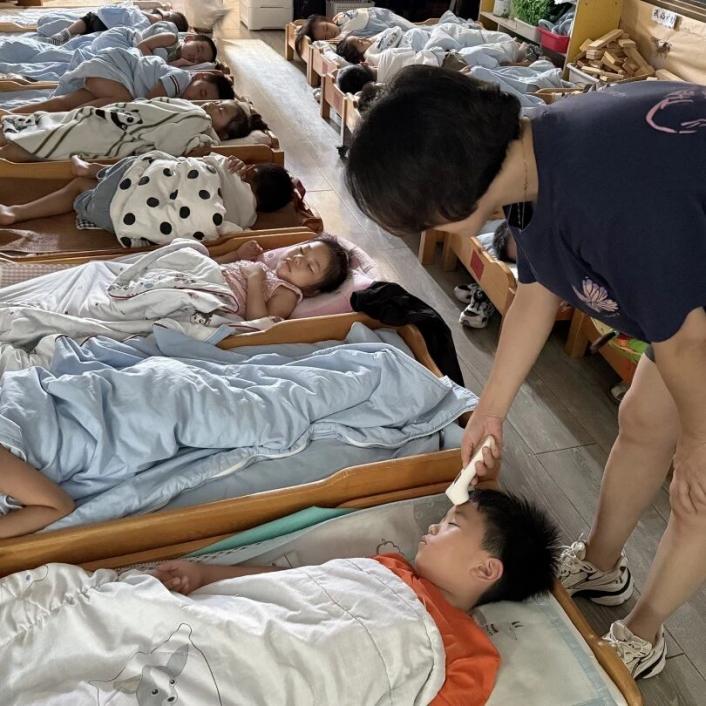 考虑到午睡环节是幼儿园安全管理的高风险点,培训还聚焦午睡看护细则。保健医生强调,午睡是幼儿能量补给的关键时段,需以极大的耐心、细心与责任心筑牢安全防线。并明确“一问二查三测”的午睡前安检流程,即询问幼儿身体状况、检查口腔及随身物品、测量体温;细化“四巡五看六听”的午睡中动态监护要求,包括定时轻步巡视、观察面色呼吸睡姿、倾听呼吸及异常声响,全方位规范午睡管理。