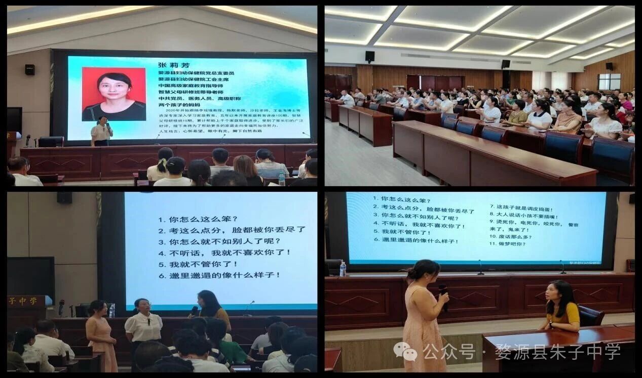 为进一步加强家校社共育,促进学生健康成长,近日,婺源县朱子中学邀请中国高级家庭教育指导师、婺源县妇幼保健院工会主席张莉芳来校开展家庭教育讲座。旨在通过专家指导,搭建协同育人桥梁,帮助家长破解家庭教育困惑。学校相关领导、政教处负责人和近200名九年级学生家长参加了本次活动。