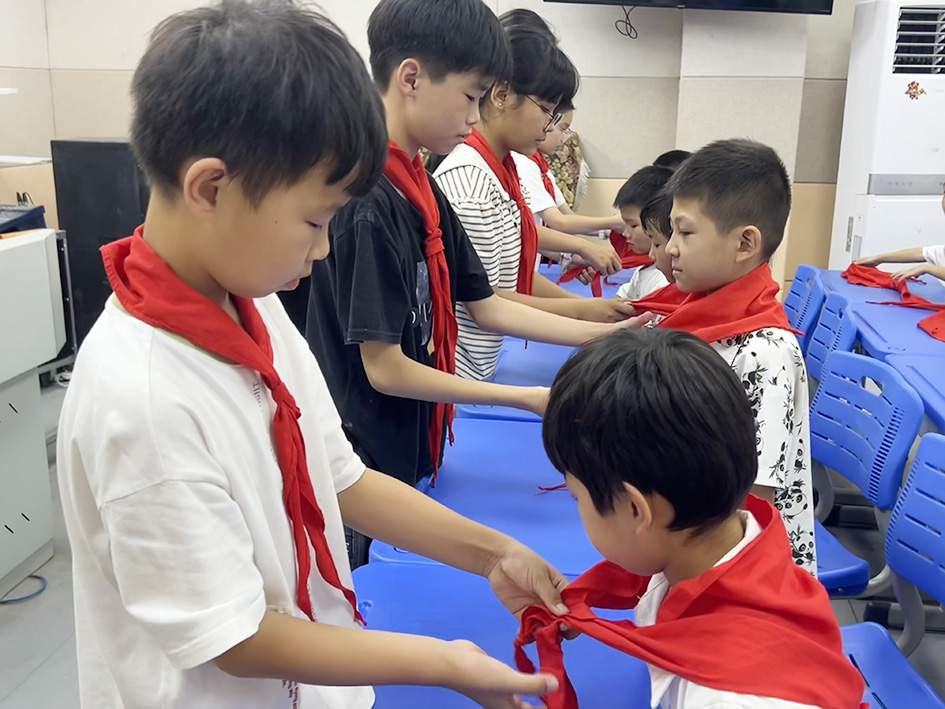 在庄重的入队仪式上,老队员为新队员佩戴红领巾,鲜艳的领巾在胸前飘扬,新队员面向队旗庄严宣誓,稚嫩的声音坚定有力。火红的队旗见证着新一代少年的成长誓言。