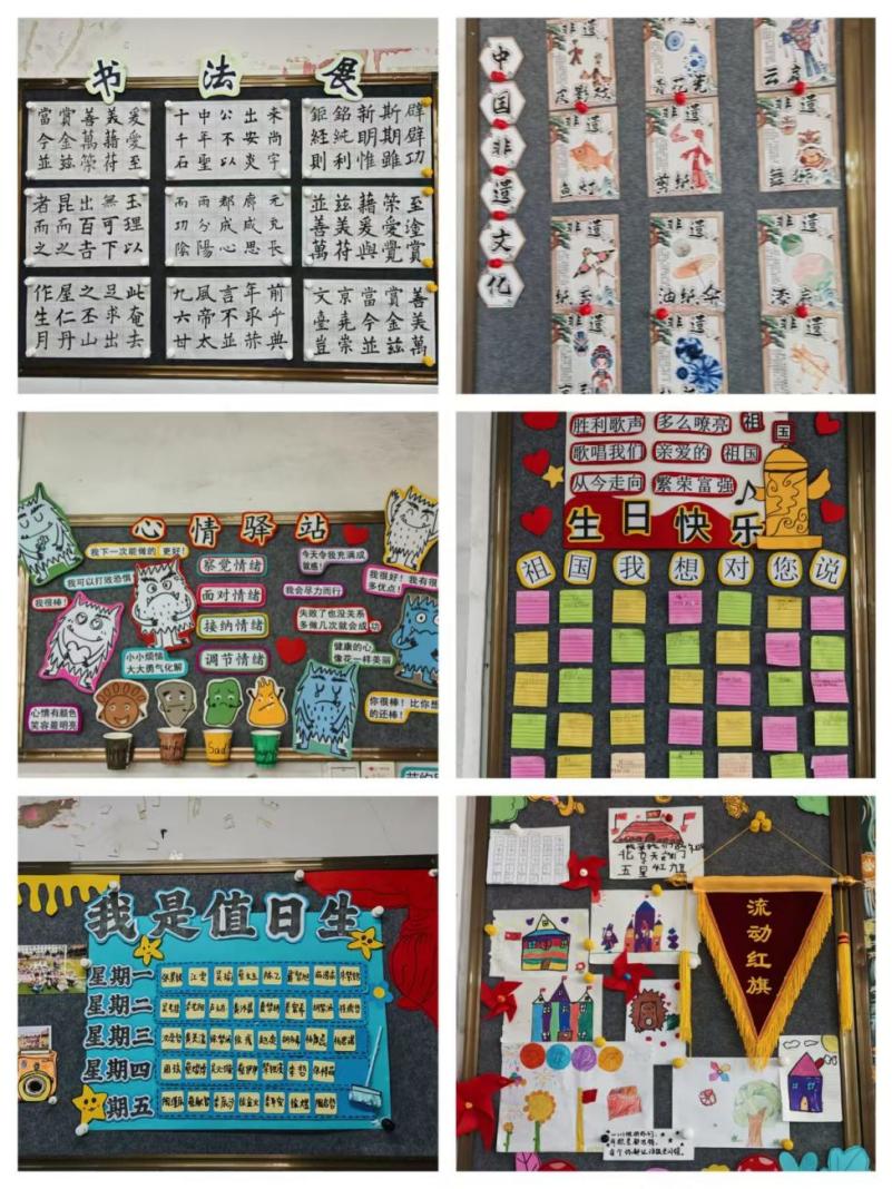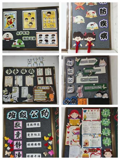 各班班主任根据孩子的年龄特点,巧妙构思,精心布置,教室后面一幅幅黑板报既美观又创新,内容栩栩如生,把无声的教育变成有声的教育,为班级文化增添了浓厚的一笔。