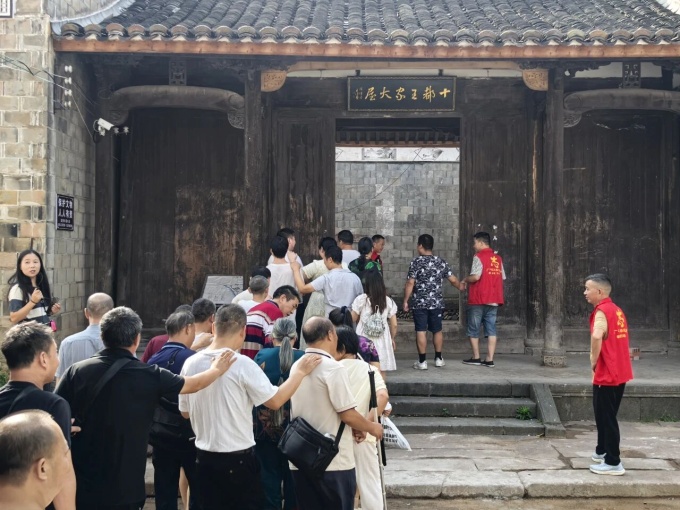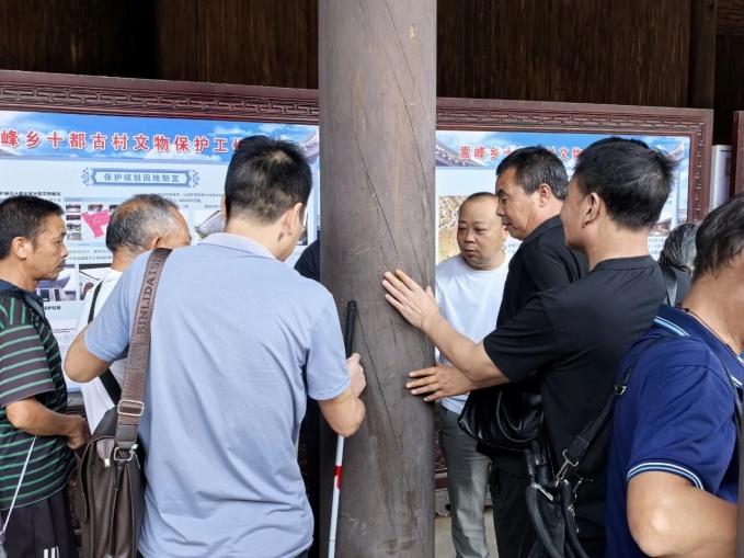 当天上午,盲人朋友们在陪护家属和助残志愿者的全程陪同下前往嵩峰乡十都王家大屋游览。在工作人员的贴心陪伴与导游的细致讲解下,大家徜徉于青石板路,用双脚丈量,通过触摸古老的墙砖,体会“中华第一民宅”十都王家大屋的风光。