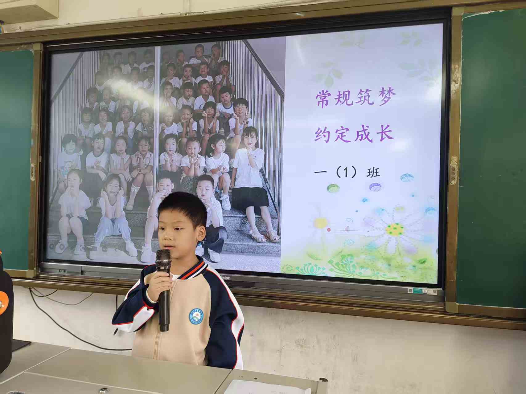 以“仪式感”激发“内驱力”。活动设置“班级风采牌”展示环节,各班通过创意口号、特色手势等形式彰显集体风貌。“一班一班,非同一般,勤学善思,快乐成长!”一(5)班学生举起自制的向日葵手牌齐声呐喊,稚嫩的声音中透着自信。活动现场还为表现突出的班级颁发“常规养成示范班”流动红旗,通过正向激励强化集体荣誉感。