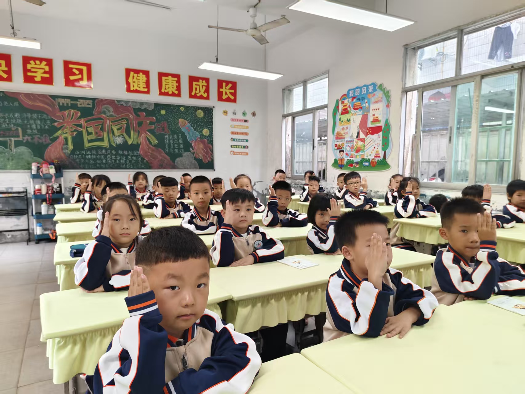 以“小细节”培养“大习惯”。展示活动涵盖课前准备、课堂礼仪、读写姿势、互动问答、课间整理等8项核心内容。孩子们在班主任和“小老师”的带领下,从听到铃声迅速静息、双手捧书朗读时的专注眼神,到握笔写字时“一拳一尺一寸”的标准姿势,再到举手发言时“右手弯曲、掌心向前”的规范动作,每一个细节都展现出入学一个多月的蜕变。