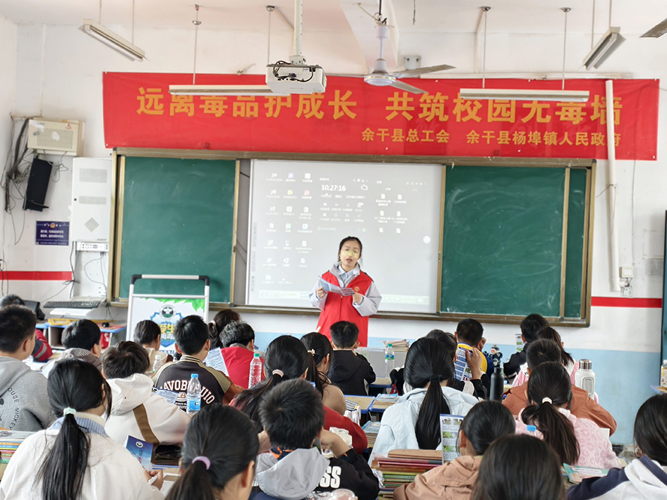 10月22日,余干县总工会联合杨埠镇党委政府走进杨埠初中,开展以“远离毒品护成长,共筑校园无毒墙”为主题的禁毒宣传进校园活动。