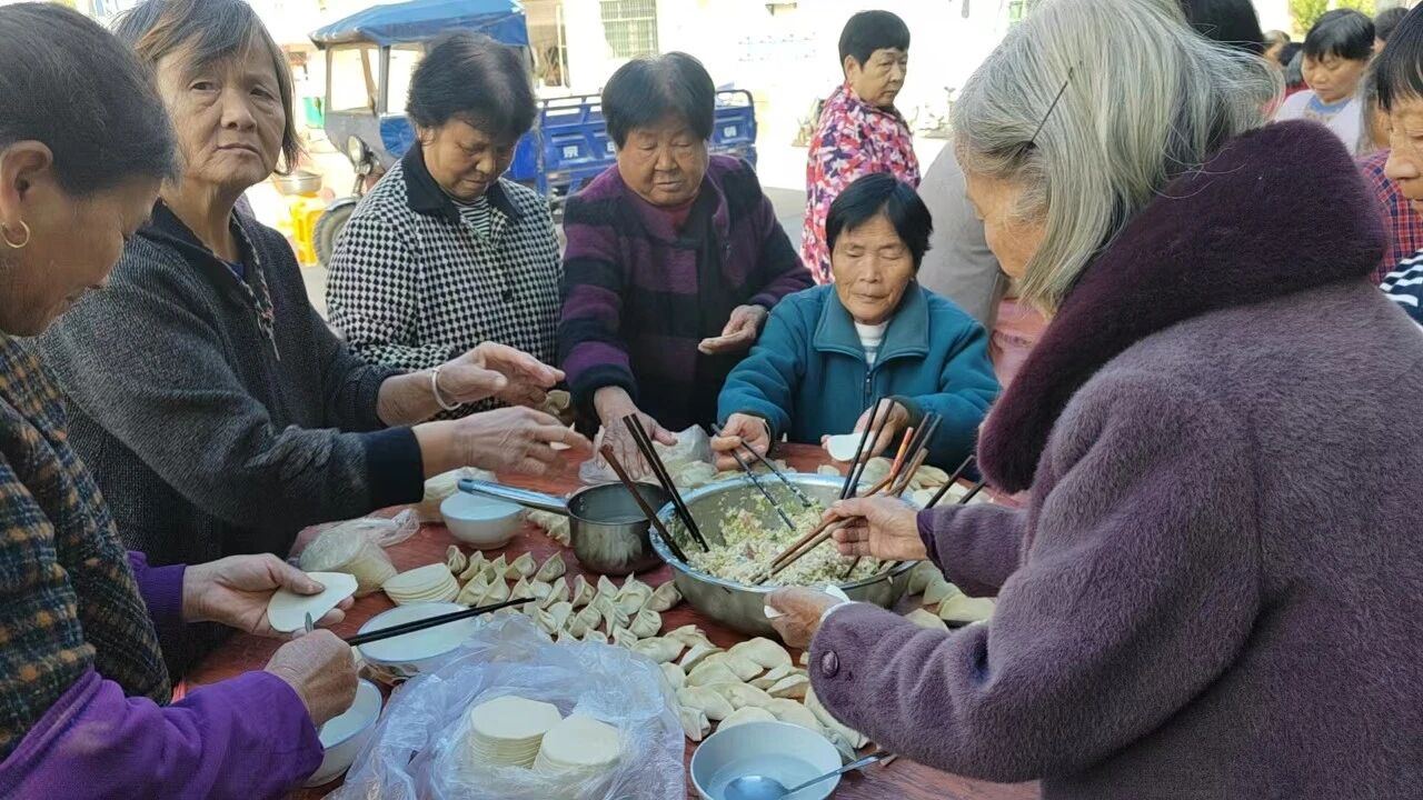 在裴家村,一场热闹非凡的文艺演出拉开了节日庆典的序幕。活动现场欢声笑语,其乐融融。随后,村里组织了老人们一起包饺子。大家围坐在一起,揉面、擀皮、拌馅、包捏,动作娴熟,配合默契,在闲话家常中增进着邻里感情。不一会儿,热气腾腾的饺子出锅,200多位老人欢聚一堂,共同享用这顿充满爱与温暖的“团圆饭”,场面温馨感人。此外,裴家村的党员志愿者们还开展了上门走访慰问活动,为村里的困难老人送去了米、面、油、牛奶等生活物资,也送上了节日的诚挚问候与祝福。多样化的活动,让每一位老人都笑逐颜开,满满的幸福滋味写在脸上,暖在心间。