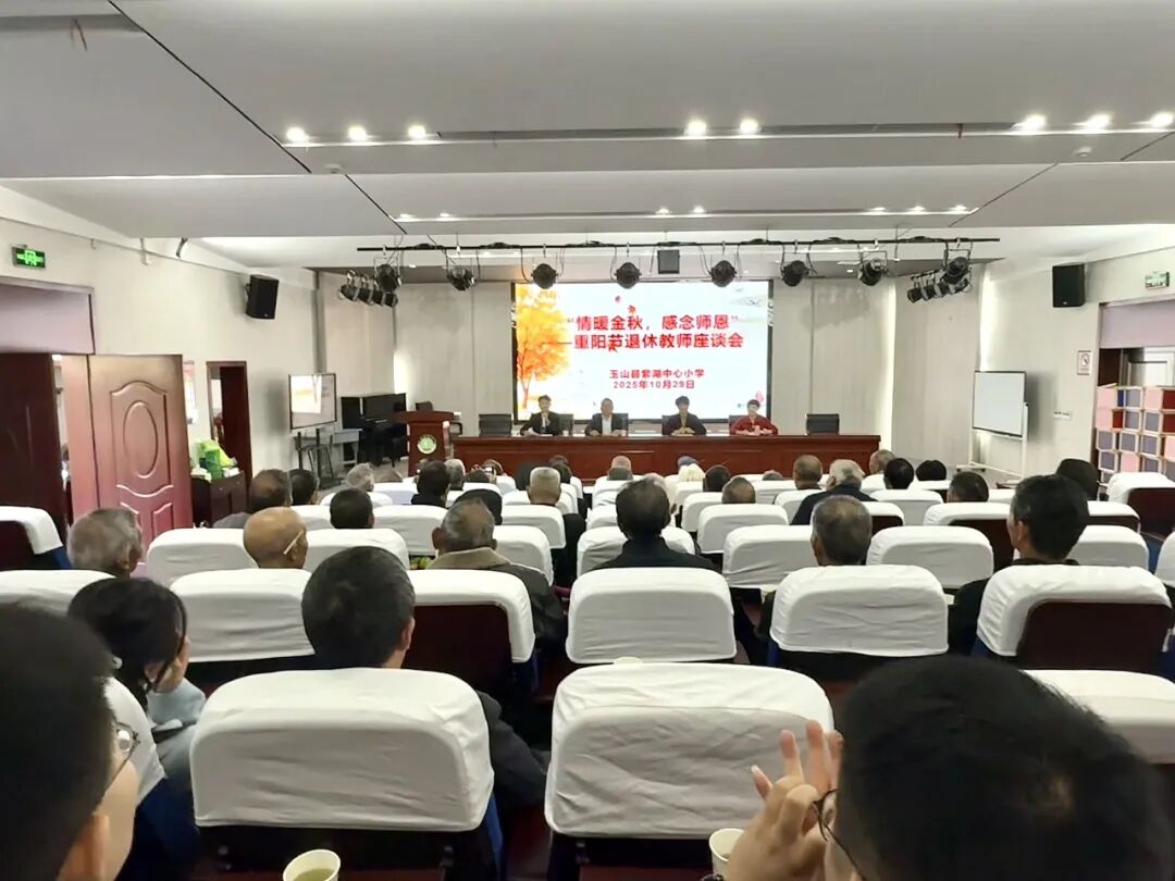 为弘扬尊师重教、敬老爱老传统,10月29日,玉山县紫湖中心小学温情举办退休教师座谈会。