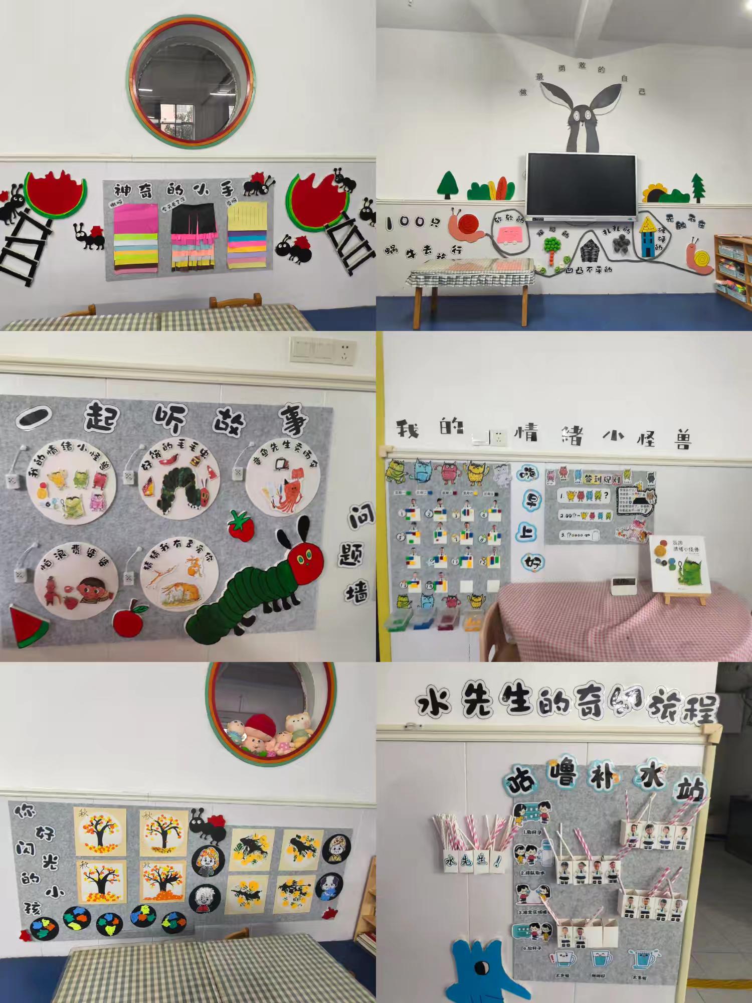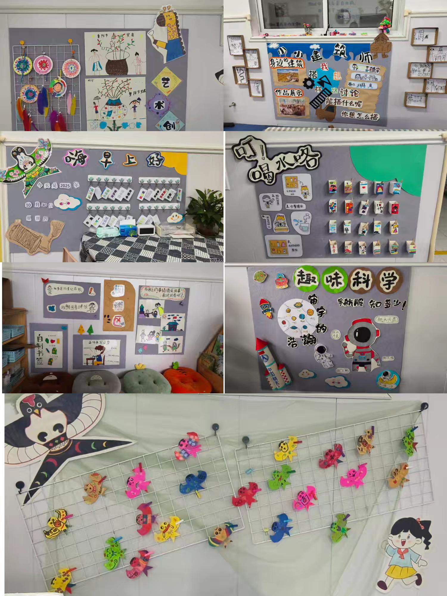 评比活动中,园长与各班老师共同参观了所有班级的环创区域。大家在参观中互相学习,交流经验。总而言之,幼儿园环创绝非单纯的空间装饰,它是一门“隐性课程”。每一处精心设计的角落、每一种材质的巧妙运用,都在以儿童的视角构建着教育场域——它让孩子在与环境的互动中萌发探究欲,在审美体验里滋养创造力,更在潜移默化中培养着他们的合作意识与生活智慧。这种“润物无声”的环境教育,最终将助力孩子在充满童趣与思考的氛围中,收获全面且富有个性的成长。(郑雅雯)
