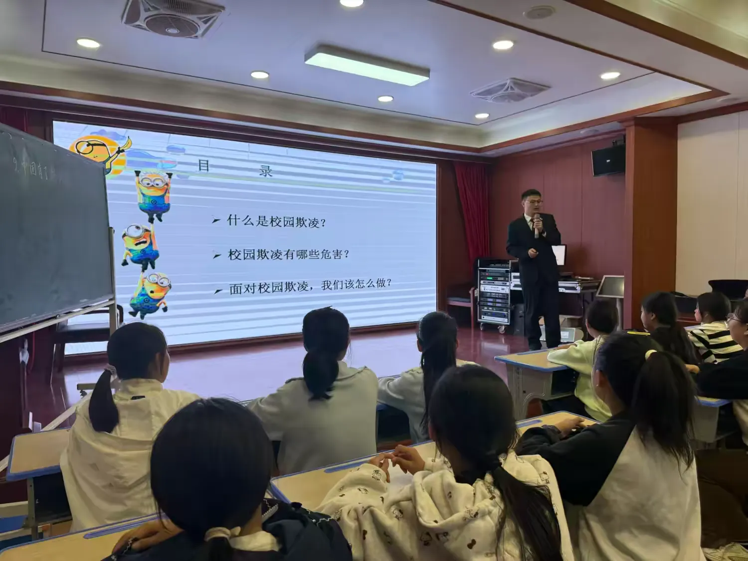 活动中,校相关领导结合学生日常场景,深入浅出地阐释校园欺凌的定义、表现形式及危害,重点引导学生识别言语侮辱、身体攻击、社交孤立等显性与隐性欺凌行为。活动结合真实案例剖析欺凌行为的法律后果,明确“恶作剧”与“违法行为”的界限,强化学生规则意识与法治敬畏心。