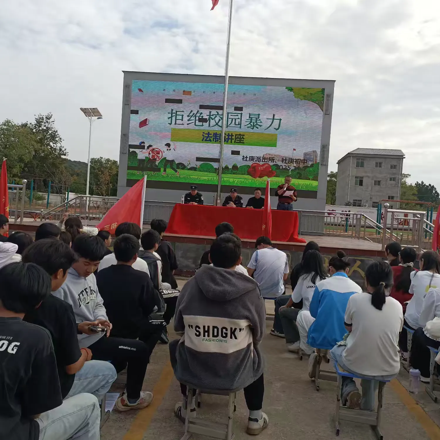 11月7日,余干县社庚初级中学在操场举办“预防校园欺凌”法治教育讲座。活动由学校德育处牵头,邀请社庚镇派出所民警主讲,全校师生参与,旨在提升校园欺凌认知、增强法律与自我保护意识,筑牢平安校园防线。