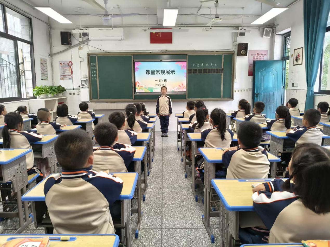 此次评比聚焦文明礼仪、课前准备、师生互动等核心维度,全方位考察孩子们的日常行为习惯养成情况。评比现场,各班学生精神抖擞、朝气蓬勃。“课前准备,准备就绪!”口令清脆,孩子们迅速整理用品、坐姿端正;写字训练中,孩子们严守“一拳一尺一寸”规范,认真书写;读书时,互动口令整齐,童声抑扬顿挫,朗朗书声回荡校园。