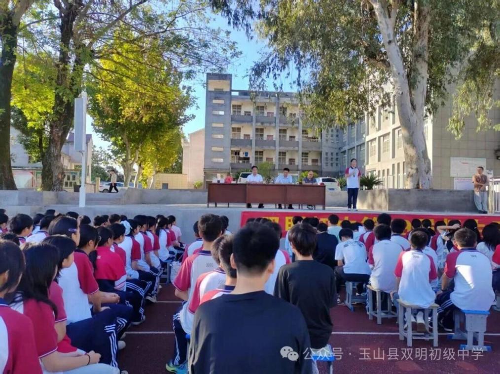 近期,玉山县双明初级中学全体师生齐聚校园,举行2025-2026学年度第一学期开学典礼暨优秀学生表扬大会。