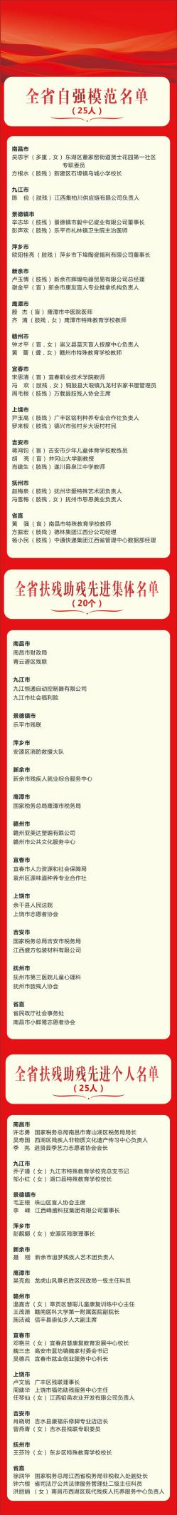 11月20日上午,第七次江西省自强模范暨扶残助残先进表彰大会在南昌召开。会上表彰了25名“全省自强模范”、20个“全省扶残助残先进集体”、25名“全省扶残助残先进个人”。(张少勇)