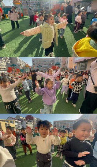 热身环节,孩子们随着欢快的音乐舒展肢体,从伸展运动到跳跃运动,每个动作都充满童真活力。老师们精心编排的早操融合了走、跑、跳等基础动作,既锻炼了幼儿的协调性,又让孩子们在集体运动中感受团队协作的力量。阳光洒在一张张笑脸上,构成冬日里最温暖的画面。