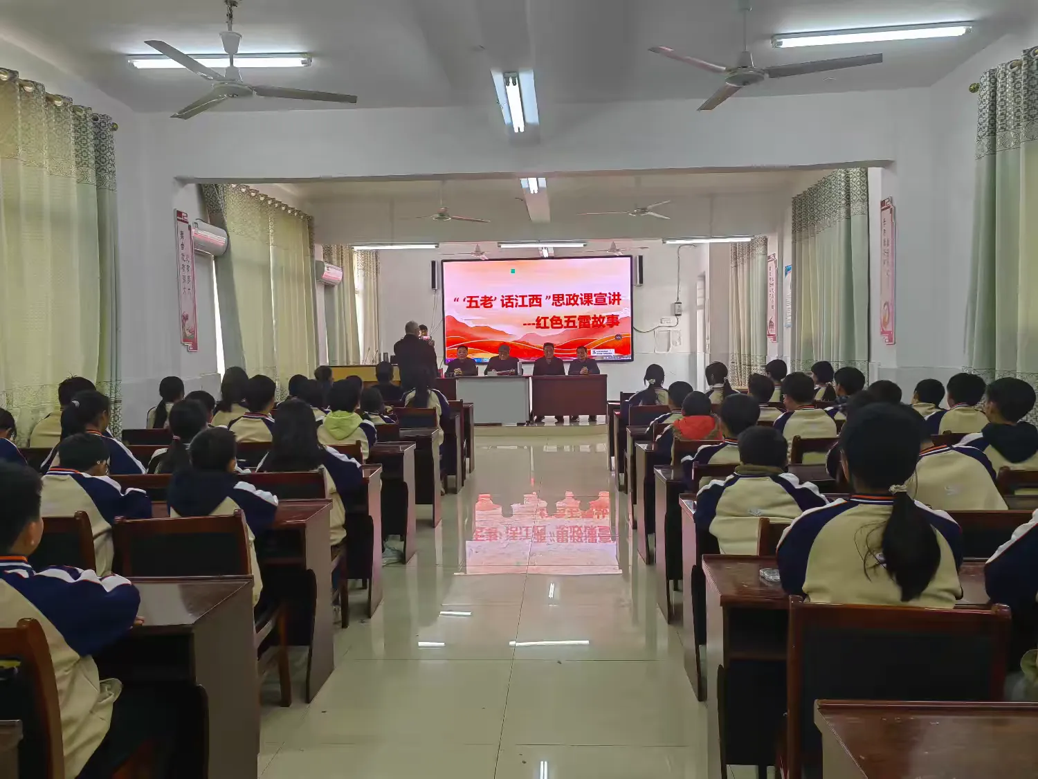 近日,余干县社庚初级中学通过一场别开生面的思政课,将红色教育与乡土历史相结合,为学生们带来了沉浸式的精神洗礼。学校特邀社赓镇关心下一代工作委员会成员及余干县五雷乡烈士后代,以“红色五雷故事”为主题展开宣讲,让方志敏革命精神在青少年心中落地生根。